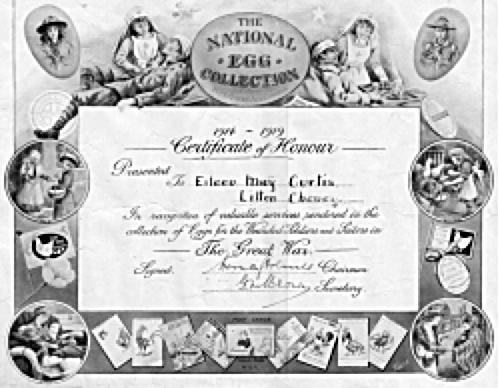 Eileen Curtis (Mrs Cox) ‘did her bit’ in the 1914-18 War by Collecting Eggs for the Troops at the Front