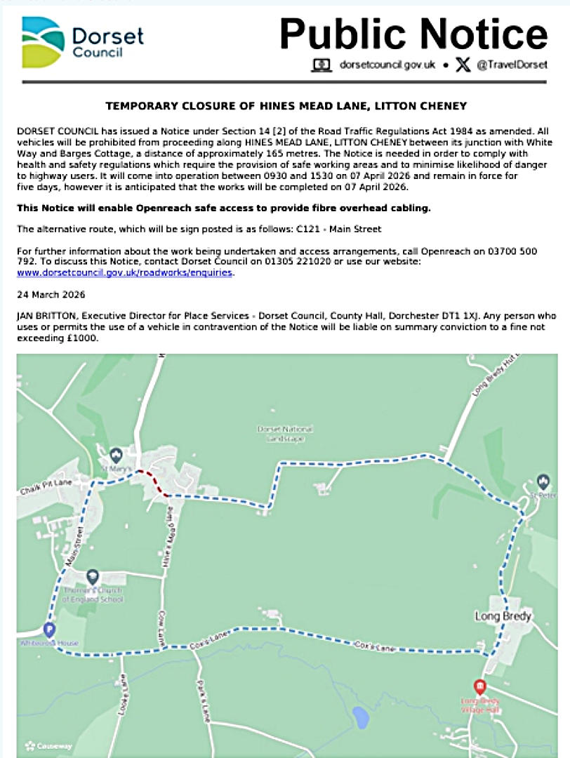 Parish Councillors – contact details on the village website littoncheney.org.uk There will shortly be a leaflet drop – please