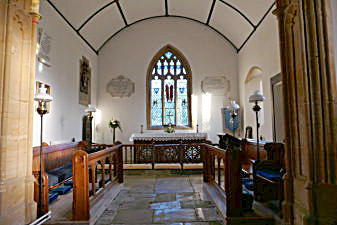 The epitaph to Ann Henvil on the small brass under the south window is diffcult to read but worthy