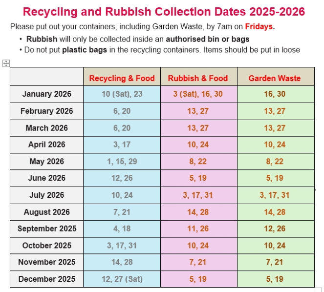 There is also a paid for service for collecting garden waste which is collected on alternate FRIDAYS.