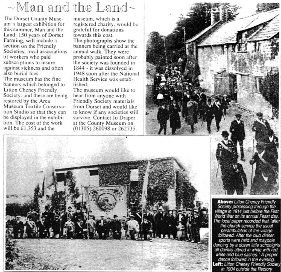Founded in 1844, the Litton Cheney Friendly Society, which annually held its annual club fete on
