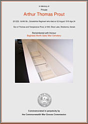 Prout, Arthur Thomas  Darby, William John Born in 1886 at Burton Bradstock, son of Richard & Anna Darby. During the war he was a Lance Corporal in the Royal Marine Artillery.  Service No. PLY/4689 He died on the 5th of April 1917 on SS Calliope after she was torpedoed by the German submarine U-65 (Hermann von Fischel) Buried in Trapani Town Cemetery, Italy, plot I, row 4A. Billett, Arthur Somers Born on the 20th of July 1882 at Bruton, Somerset, the son of James and Ellen Billett (nee Tilbury).  Baptised on the 17th of November 1882 at Bruton. On the 1891 census he is shown as living in Wyke Regis.  On the 1901 and 1911 censuses he was recorded at the Eastney Royal Marine Artillery Barracks, Portsmouth. On the 28th of February 1911 he married Laura Minnie Billett of White Cross, Litton Cheney,. She appears on the 1911 Litton Cheney census as Laura Minnie Pitcher, daughter of Louis Pitcher, baker, at White Cross, Litton Cheney. During the war he was a gunner with the Royal Marine Artillery.  Service No. RMA/9392 (R.M.R/B/1241) (Po).  He died on the 19th of March 1918 aged 36 on SS Burnstone when she was torpedoed by the German submarine UB-62 (Bernhard Putzier).  His body was not recovered for burial. Commemorated on Portsmouth Naval Memorial Panel 30. In Honoured Memory of the Men of this Parish who died during the First World War Chainey, William John Born in Litton Cheney in 1886, the son of Eli and Elizabeth Chainey. Baptised on the 31st of October 1886. On the 1911 census for Bridport he is shown as living at Clayhanger, servant to George James and Cora Maud Cox During the war he was a private in the 2nd Battalion Dorsetshire Regiment.  Service No. 16907 He fought in Mesopotamia where he died on the 25th of March 1917 Buried in Al Basra War Cemetery, Iraq. Plot: Panels 22 and 63. Collins, Albert Thomas Born in 1885 in Litton Cheney.  Baptised on the 26th of December 1885 at Puncknowle. Litton Cheney Bellringer.  Married Bessie Foot on 6th June 1913. During the war he was a private with the ¼th Battalion Dorsetshire Regiment.  Service No. 201210.  He fought in Mesopotamia where he died on the 1st of June 1918. Buried in Baghdad War Cemetery Ref. XII L5 Fry, Charles Edward Charles Fry, born on 26th December 1881 in Dorchester, Dorset, was the son of Thomas and Anna Fry of “Baglake”, Litton Cheney, Dorset. He was married to Hilda Sophie, née Watson, on 4 September 1916. He attended Dover College 1895-1901, where he was head prefect in his final year. Whilst at Merton he was President of the Boat Club in 1903/4. In 1906, he became an Assistant Classics Master at Manchester Grammar School, and set up the school’s rowing club. On the outbreak of war he applied to become an officer with the Public Schools’ Battalion, returning to Manchester to work with the school’s Officer Training Corps. Gazetted to the Royal Field Artillery, he left for France in 1915. He was killed on 17th April 1917, aged 35, along with three other members of his gun team, by a direct hit during a bombardment near the village of Athies, on the outskirts of Arras. He is buried in Anzin-St Aubin British Cemetery, Pas-de-Calais, France, and is also commemorated on the Cheadle Hulme Memorial (as T C Fry), and on the war memorial at St Mary’s Church, Litton Cheney, Dorset. Fry, Walter Louis Born in 1897, son of George and Annie Charlotte Fry of The Paddocks, Litton Cheney. During the war he was a private with the 1st Battalion, West Ontario Regiment, Canadian Infantry.  Service No. 6682 He died on the 29th of May 1915 aged 18. Buried in Choques Military Cemetery, Pas de Calais, France I. C. 82 Northover, Reginald George Born in April 1884 at Litton Cheney, son of George and Jane (nee Cheney) Northover.  Baptised 15th of June 1884..A Litton Cheney Bellringer.  Jane Northover died in 1884.  George then married Amelia Trowbridge on the 29th of January 1885.  George died in January 1888 whereupon Amelia became head of the household. Enlisted on the 24th of October 1904 for 12 years. Height 5 feet 4 inches. brown hair, grey eyes, fresh complexion. Postman prior to enlisting. Stoker 1st Class on HMS Queen Mary.  Service No. 307832 He died on the 31st of May 1916 at the Battle of Jutland.  Body not recovered for burial. He is commemorated on the Portsmouth Naval Memorial, Panel 19. Walker, William Archibald Smail Not found in any census - probably because he lived in India. Born in Dum-Dum India on the 31st of October 1874, the son of Major General Alexander Walker (C.S.I.R.A.) and Anne Yewdale Lambert Smail.  Educated at. Dulwich College and Sandhurst. Gazetted 2nd Lieutenant, unattached, Indian Army, on the 10th of October 1804.  Attached to the.  Was promoted Lieutenant on the 27th November 1897, Captain on the 10th of October 1903, and Major on the 10th of October 1912.  He served with the 45th Sikhs and the 40th Pathans and was posted to the 46th Punjabis on their formation. He took part in the operations on the N.W. Frontier of India, 1897-8, including the Defence of Malakand, action at Landakai and operations in Bajaur (medal with two clasps), and in the Tirah Expedition 1897-8 (clasp), and was afterwards employed with the King’s African Rifles from the 25th of November 1903 to 10th of May 1906. After the outbreak of the European War, he was sent,in January 1915, with a double company to British East Africa and attaced to the 130th Baluchis (King George’s Own).  He was commmanding a section of the outpost line with headquarters at Mzima on the Tsava River. While visiting sentry groups with an escort of seven men on the 12th of April 1915, he came on the spoor of a large party of Germans.  He followed this up for some way in order to- locate the enemy.  Whilst returning he was ambushed by a smaller party of Germans, who were following the main force, and he and two men were shot. He was buried on the banks of the Tsava River.  The grave was marked by a cairn of stones; the two men who fell with him were bur