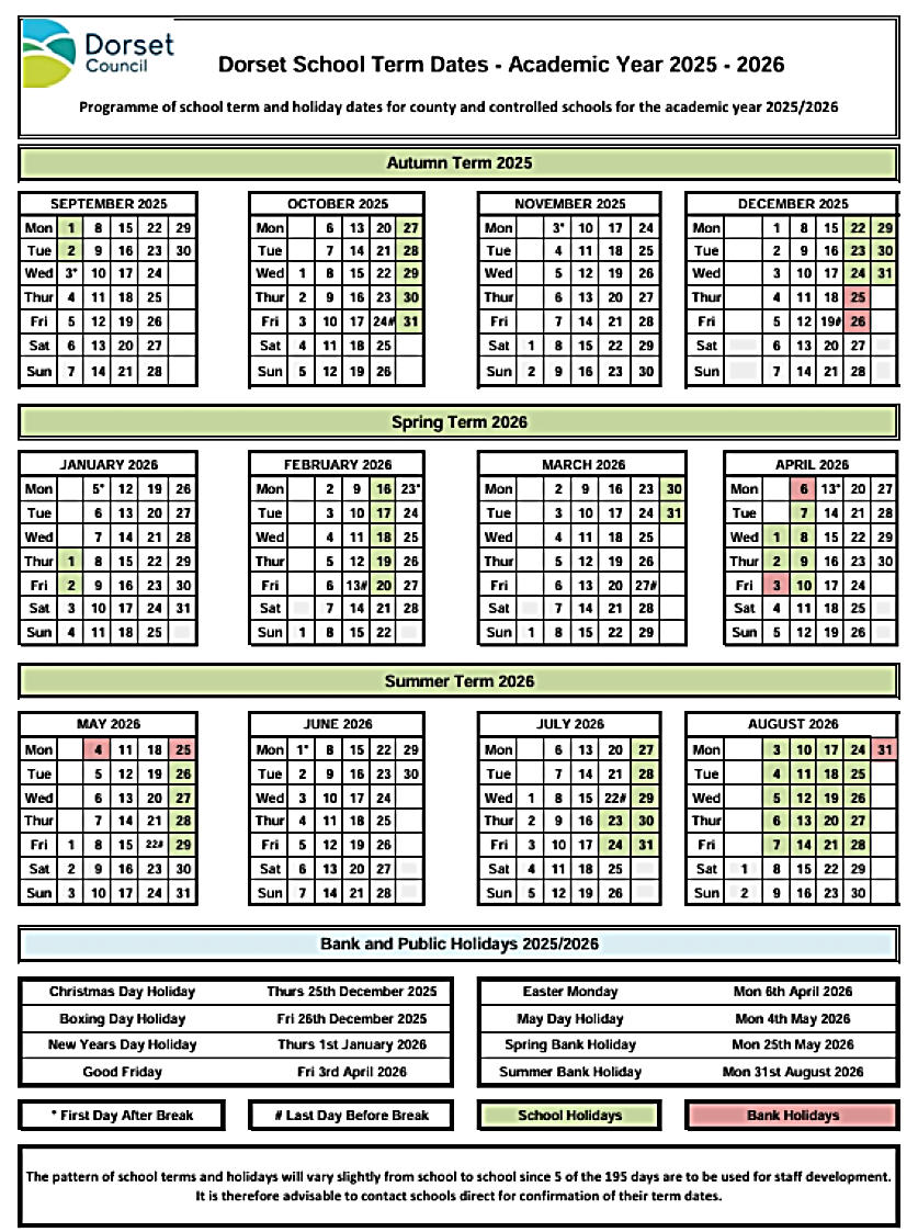 School Lane, Litton Cheney, Dorchester, Dorset, DT2 9AU Tel: 01308 482410Email: office@thorners.dorset.sch.uk   Web site: www.thorners.dorset.sch.uk Head Teacher: Mike Sitch Return to top of Page Term Dates Until September  2026 Bride Valley First Steps Toddlers Welcome to First Steps Toddlers in the heart of the beautiful Bride Valley, where you’ll find us in the picturesque village of LittonCheney, located just off the Jurassic Coast Road and ideally situated to nearby towns of Bridport, Dorchester and Weymouth. We are a parent run Playgroup, offering a fun and happy environment for babies and toddlers to play and discover, whilst making friends with other little ones along the way. Parents too can also have the chance to meet other Mum’s and Dad’s and enjoy the relaxing atmosphere and beautiful views from the village hall, whilst spending quality time with their children. We have lots of fun in store each week with toys and playtime, craft and sensory activities and sing alongs!! In the warmer months when the sun’s shining, we can venture outside giving the children wonderful outdoor playtime letting them enjoy the open space with a backdrop of the beautiful countryside. There’s also a cup of tea/coffee and biscuits included and light snacks and drinks for the children. Age range - 0-4yrs For more info feel free to contact Claire Moore 07796694052 claire.bridevalleyfirststeps@gmail.com Come along and join us!! We look forward to seeing you, Claire x Return to Top of Page THORNERS SCHOOL VILLAGE FACILITIES COMMUNITY HALL THORNERS SCHOOL BRIDE VALLEY FILMS ALLOTMENTS ST. MARYS CHURCH WHITE HORSE INN Newsletter for November 2025 Merry Christmas! The end of term promises to be amazing and hopefully just what Christmas at primary school should feel like! In the last few weeks we have planned a Candlelit Carol Service in church, 2 School Plays, a Nativity, Christmas Lunch, a Christmas Fair, Christmas Jumper Day and a visit from Father Christmas himself to round off the term! Bravo to all staff who are helping to put together our productions this year - Peter Pan, The 12 Days of Christmas and of course the little ones' wonderful Nativity. It will be great to see all the children take to their roles with their usual confidence and polish - a special mention must also go to some spectacular singing heard in rehearsals (both solos and whole class/school contributions) which should really lift the performances - Thorner's take a bow! Thank you as always to our dinner staff for putting together our Christmas lunch (for 130!). It always runs so smoothly and also to the teaching staff for making the school look so festive in the last few weeks.  It has been wonderful that Mrs Russell has also been offering so many cooking lessons to the children in Chesil and Bredy - not only so that they get to cook a new recipe each term but so that we are all treated to the delicious aromas of meatballs, mince pies and cookies drifting down the corridors when she is in working with the children - Junior Bake Off here we come! Similarly, huge thanks to parents and the TSA Committee for getting the fair in LATCH ready - I'm sure it will be a huge success again this year! Obviously, the children are incredibly excited about the big day as we finish term and, as they head home, we hope they do so well-minded of the message at the centre of this incredible time of year and the hope it can bring to all. I think as adults who work day in day out with little ones - we are very fortunate each year to see the simple but deep magic that Christmas retains - an instinctive delight which even the most relentless commercialisation of this time of year fails to warp.  It is wonderful to see pupils practically fizz and pop with excitement and anticipation during all of the events of the last few weeks - I hope they (and all parents!) have enough energy to get them to through to the big day. May all have a happy, peaceful and joyful Christmas. Mrike Sitch Headmaster Return to top of Page Welcome to the Village of Litton Cheney Photo by Claire Moore 3_7_2021 PARISH COUNCIL ABOUT LITTON CHENEY VILLAGE AMENITIES LOCAL AMENITIES VILLAGE INFORMATION HOME PAGE First Steps Toddlers Term Dates Photos History 1868 Report Please Note The pattern of individual school terms and holidays for primary, middle and secondary schools vary slightly from school to school, since vary slightly from school to school, since five of the 195 days are used for staff development. We advise you to check the school's own website or contact them direct for confirmation.