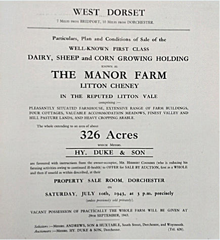 The farm was offered for sale in 1943 as Herbert was planning to reduce his farming activities owing to continuing ill-health.