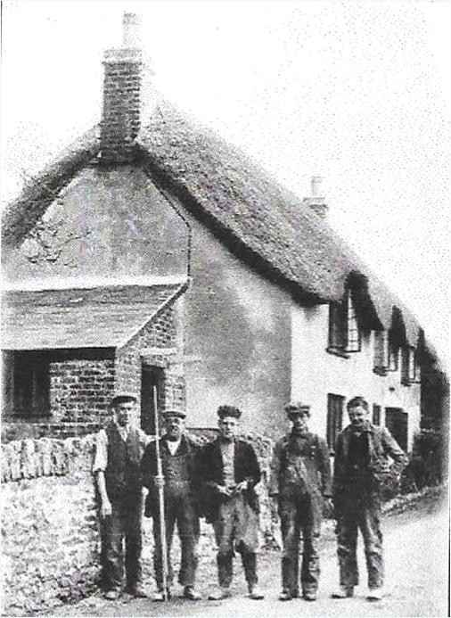 Charlie Fry, Edwin Pye, Reg Legge, Robbie Northover and Leslie Thor by Redway Cottage.